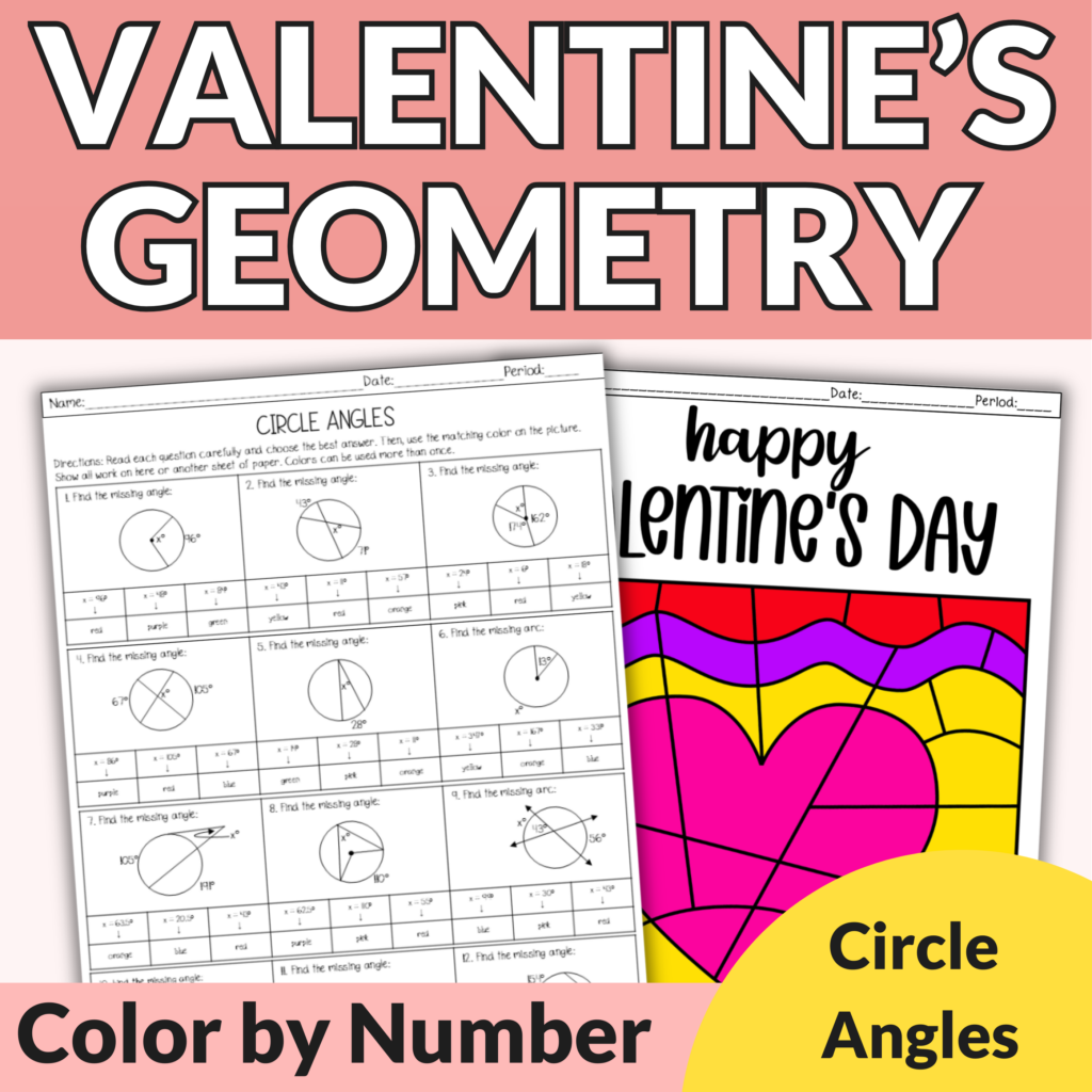 Finding and Measuring Circle Arc Angles Geometry Valentine’s Day Activity