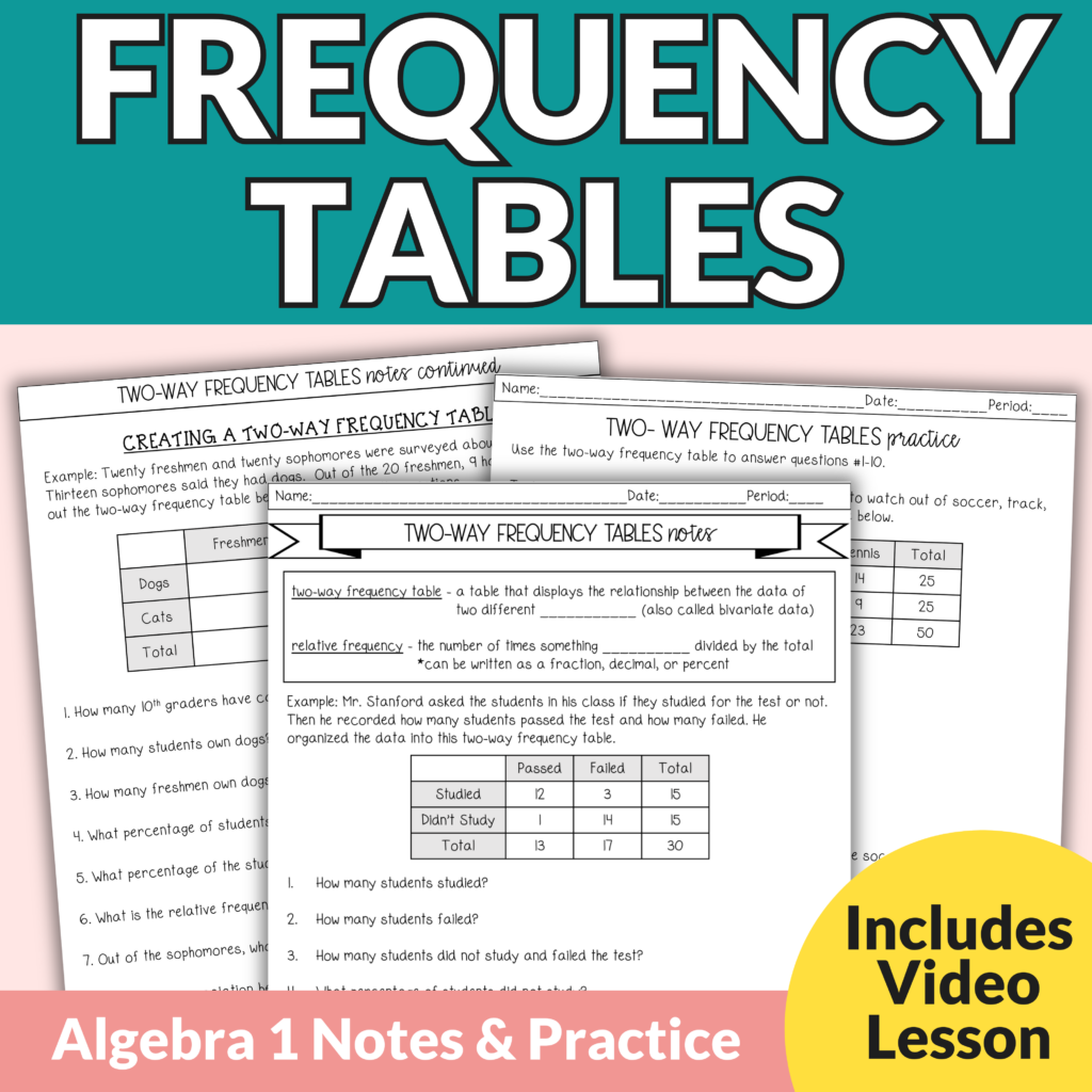 Two-Way Frequency Tables Guided Notes and Worksheets | 7th-10th Grade Algebra