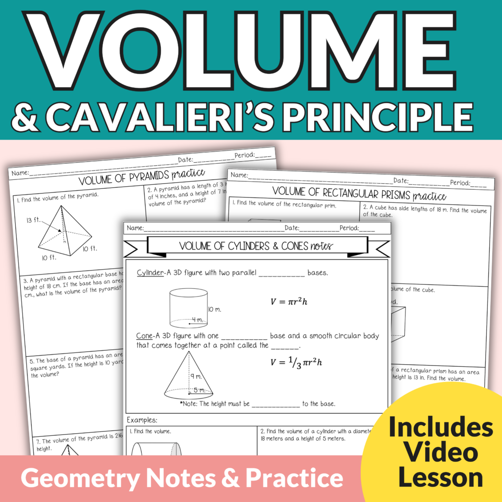 Volume and Cavalieri’s Principle Notes and Worksheets for 9th – 11th Grade