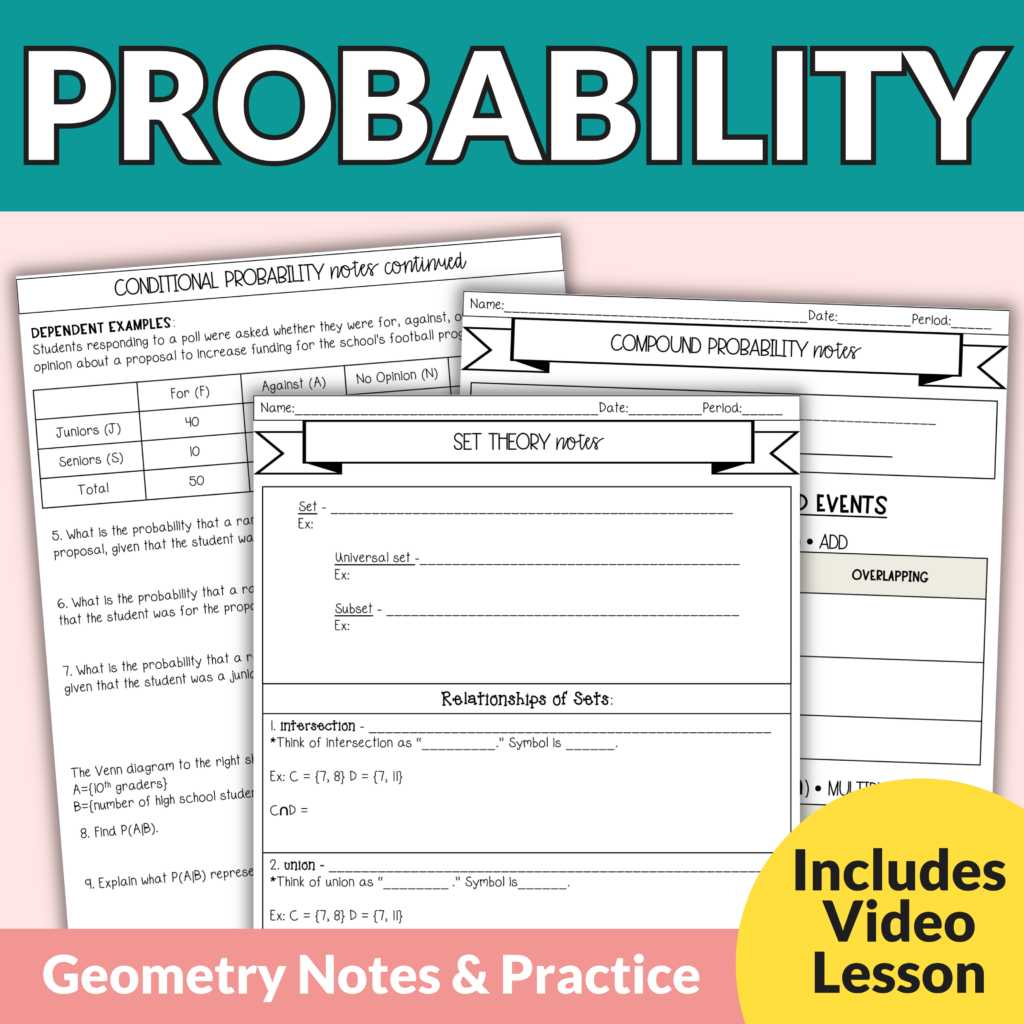 Comprehensive Probability Guided Notes and Worksheets for 9th – 11th