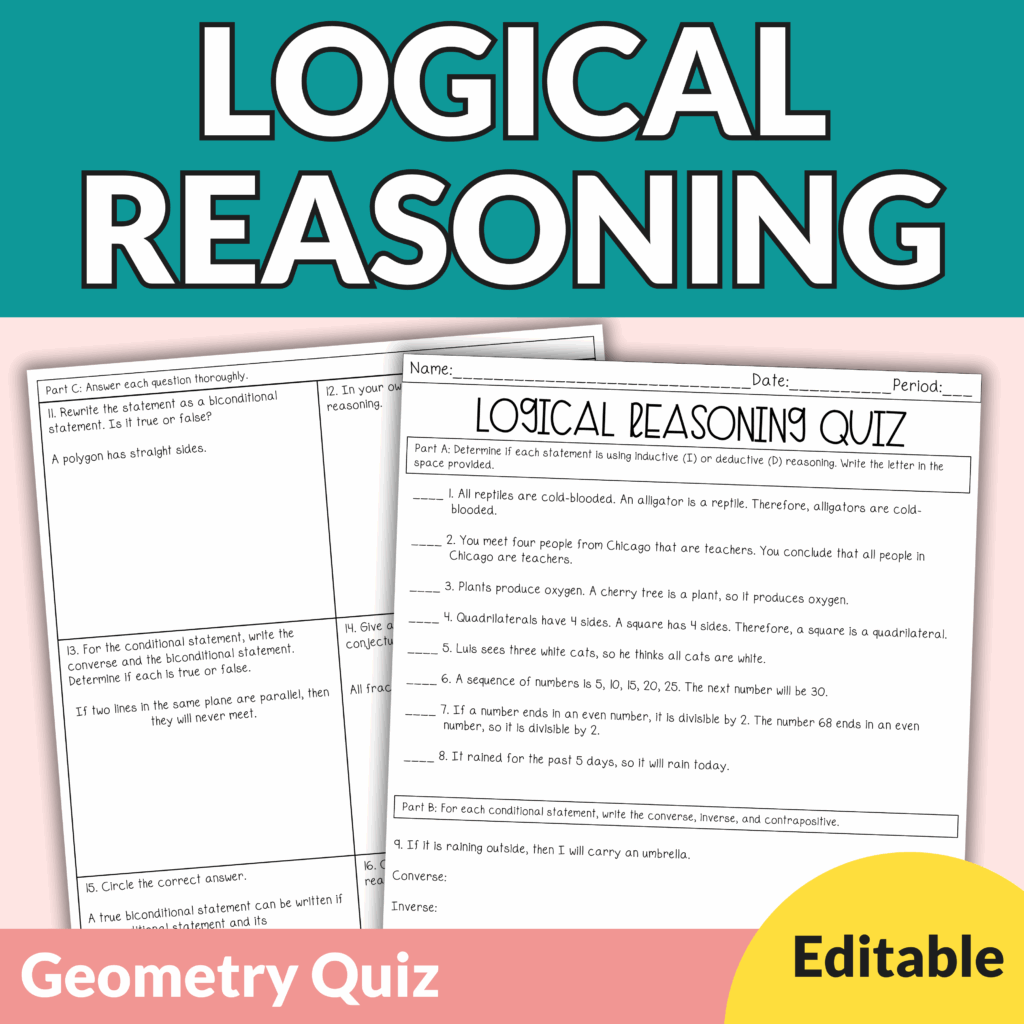 Editable Logical Reasoning Quiz with Answer Key for Geometry