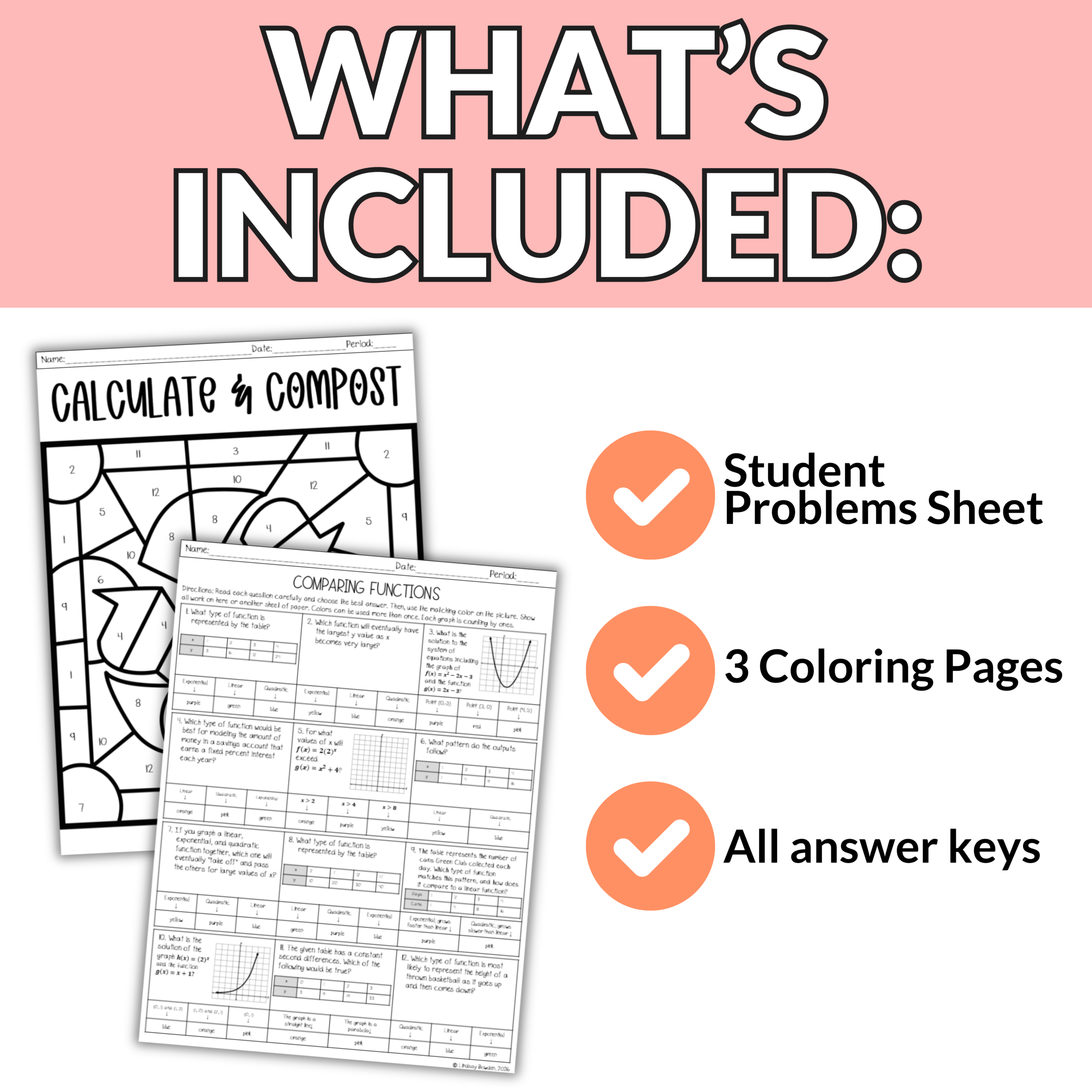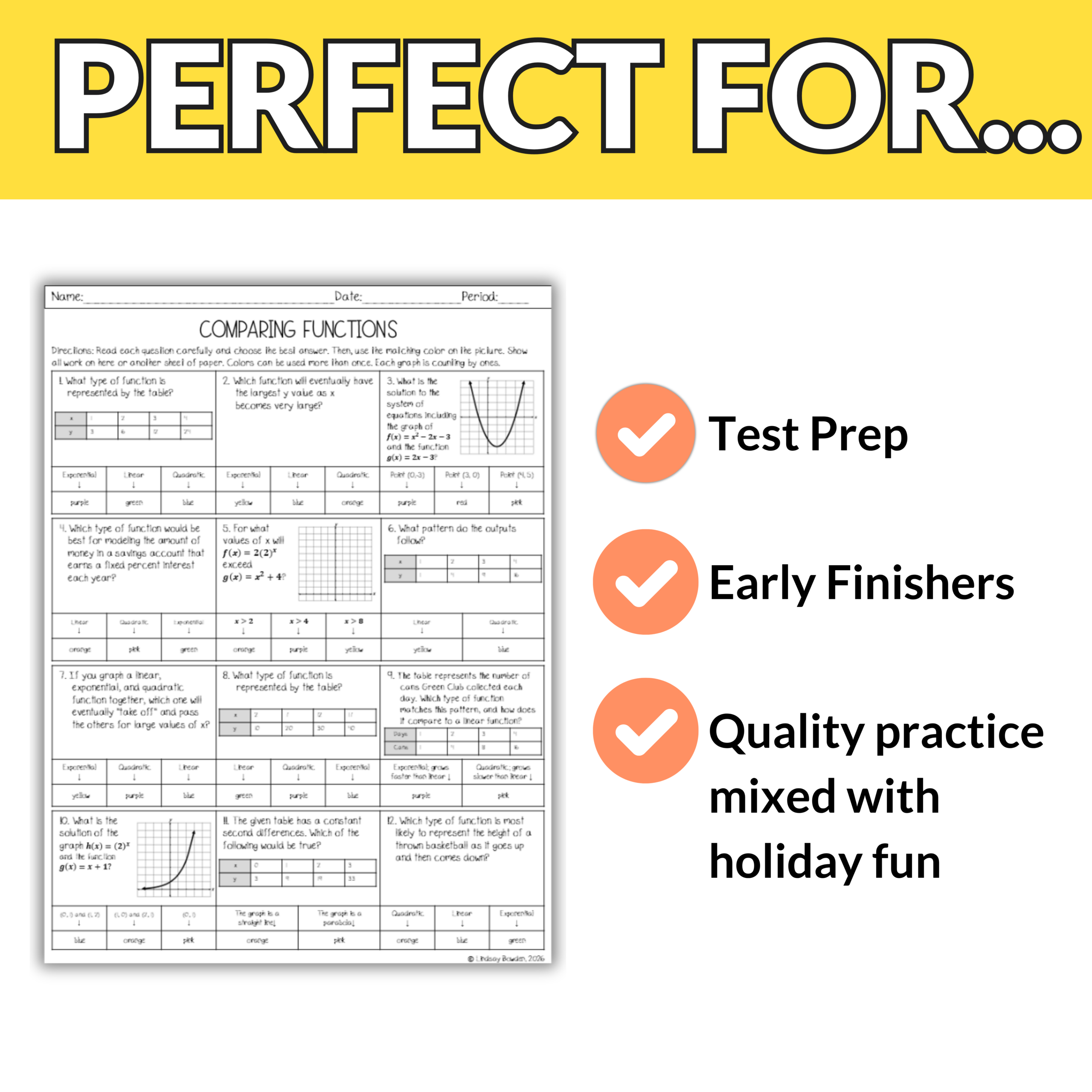 - Comparing Functions | Linear, Quadratic, and Exponential Notes & Worksheets