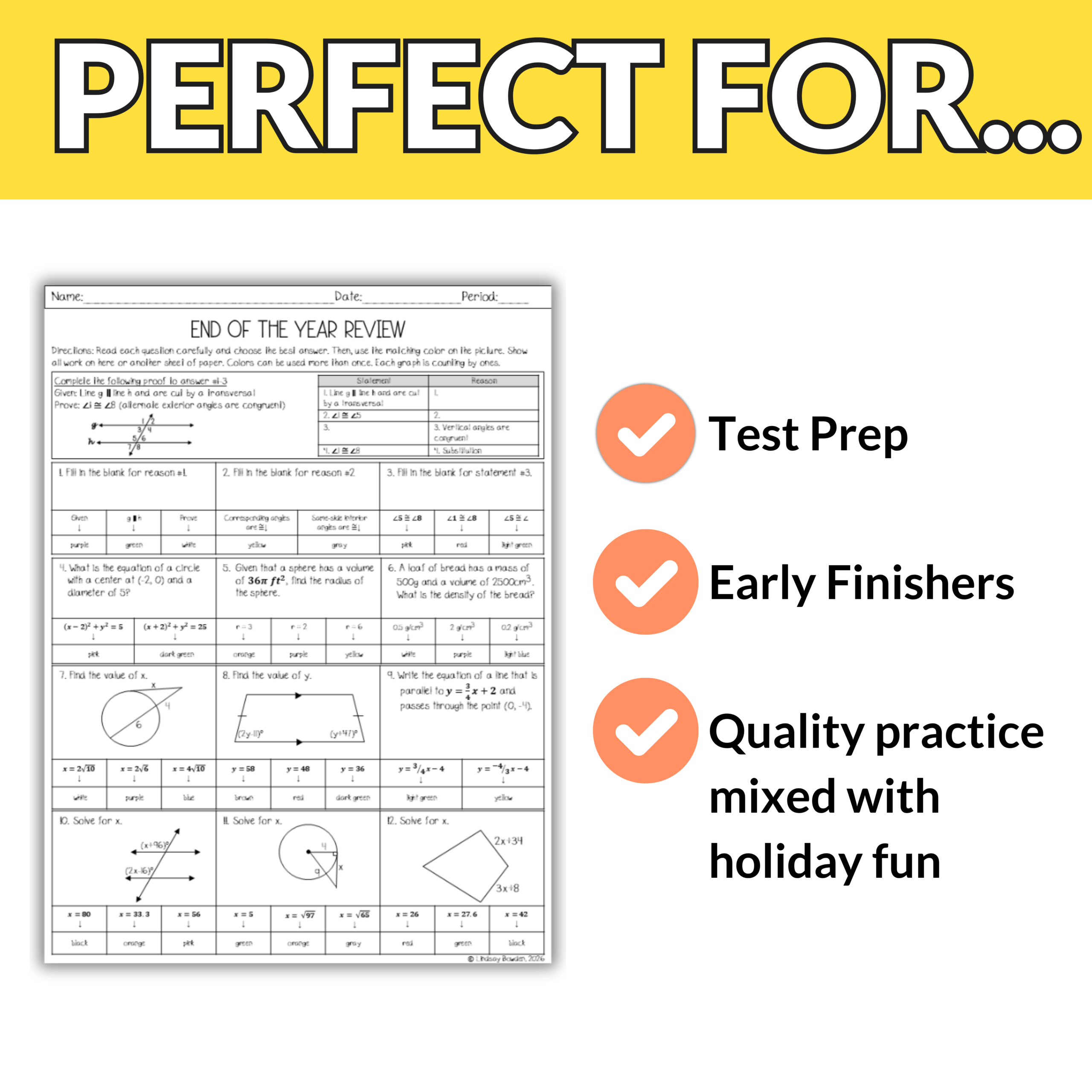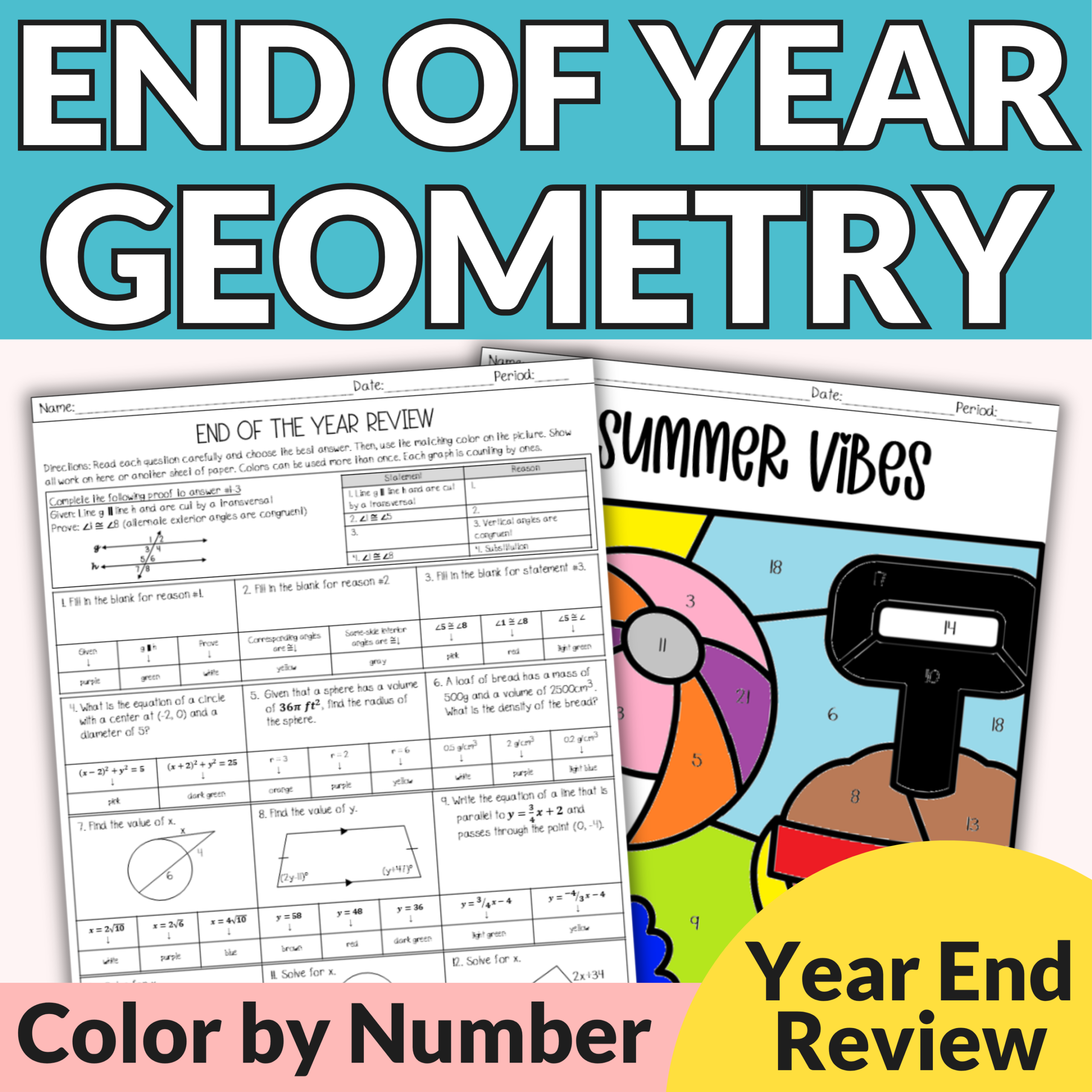 Introducing the End of the Year Geometry Color by Number Spiral Review— a no-prep resource that blends Geometry practice with a colorful twist! Perfect for keeping students focused and motivated as summer approaches. This activity is intended for 9th-11th grade.