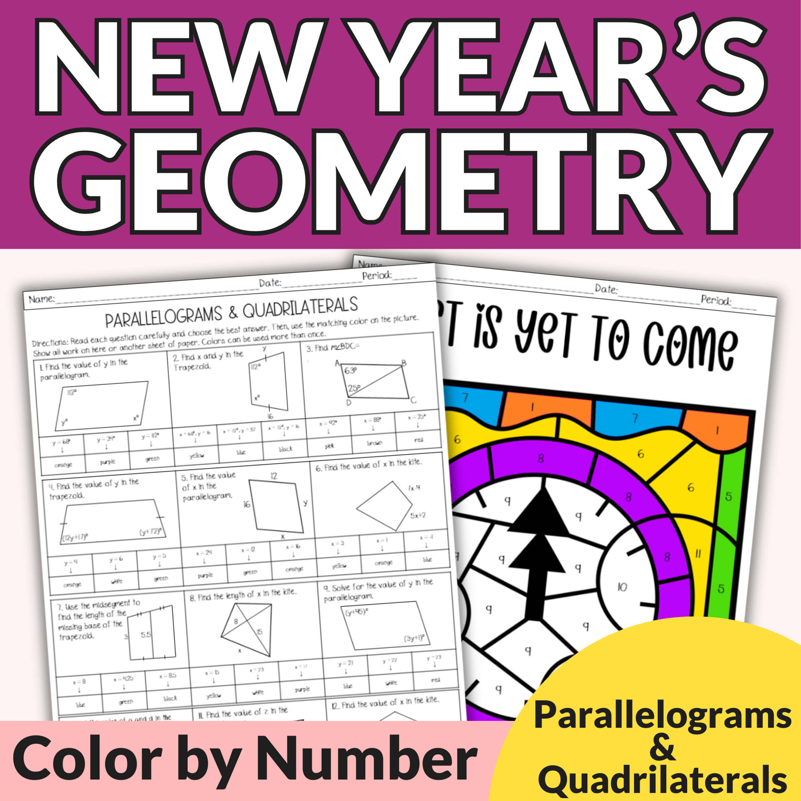 Looking for a fun and engaging New-Years-themed applying properties of parallelograms and quadrilaterals activity for the week after winter break?