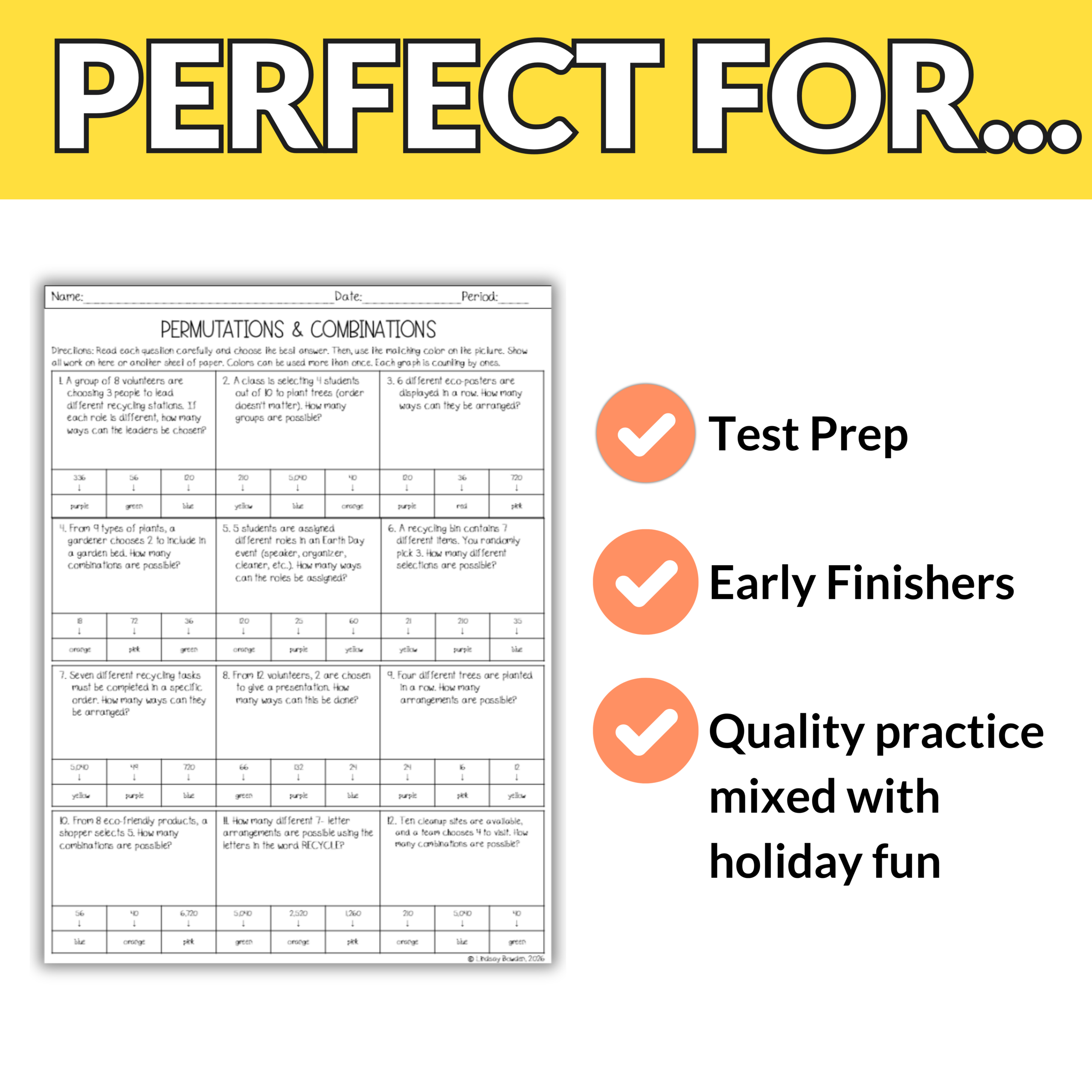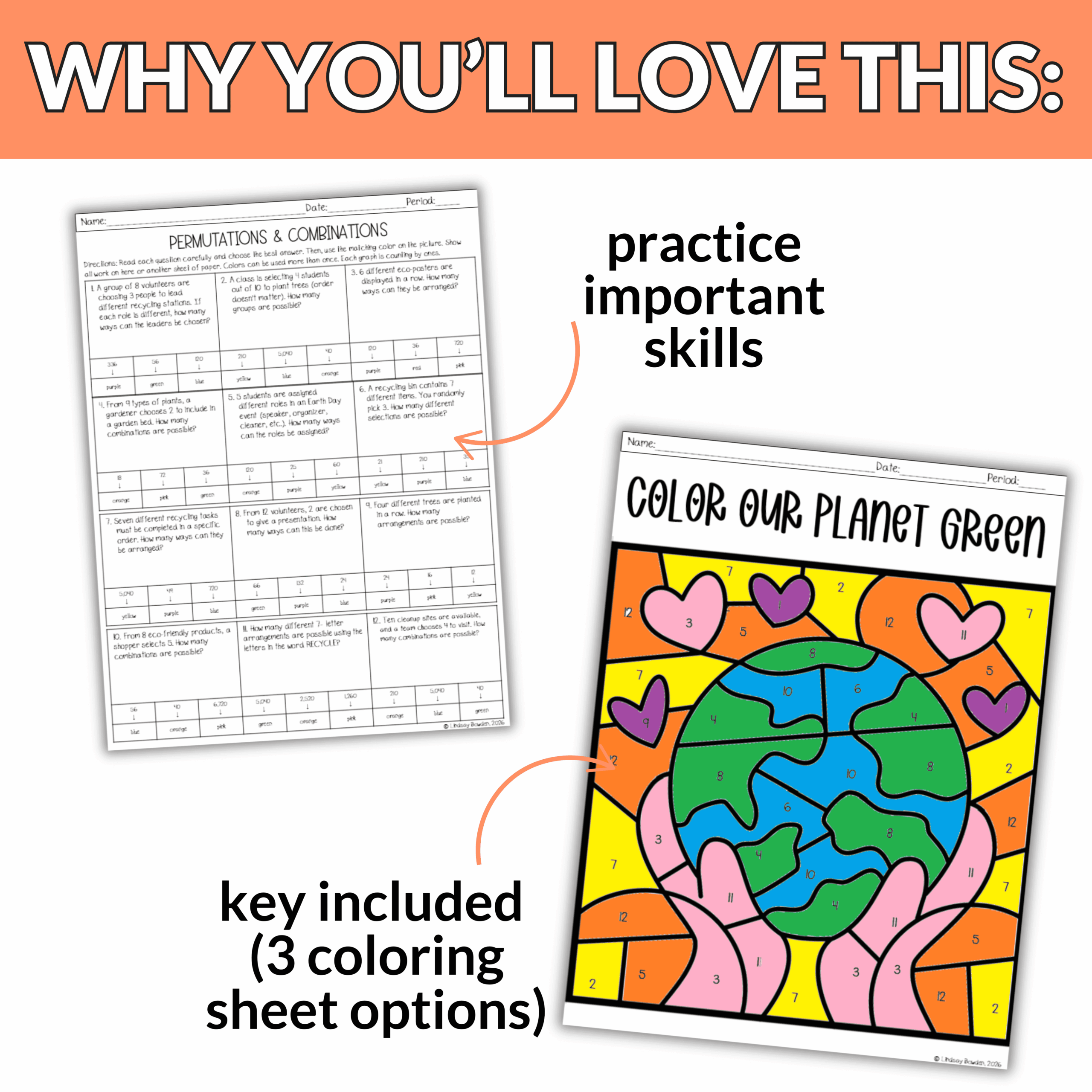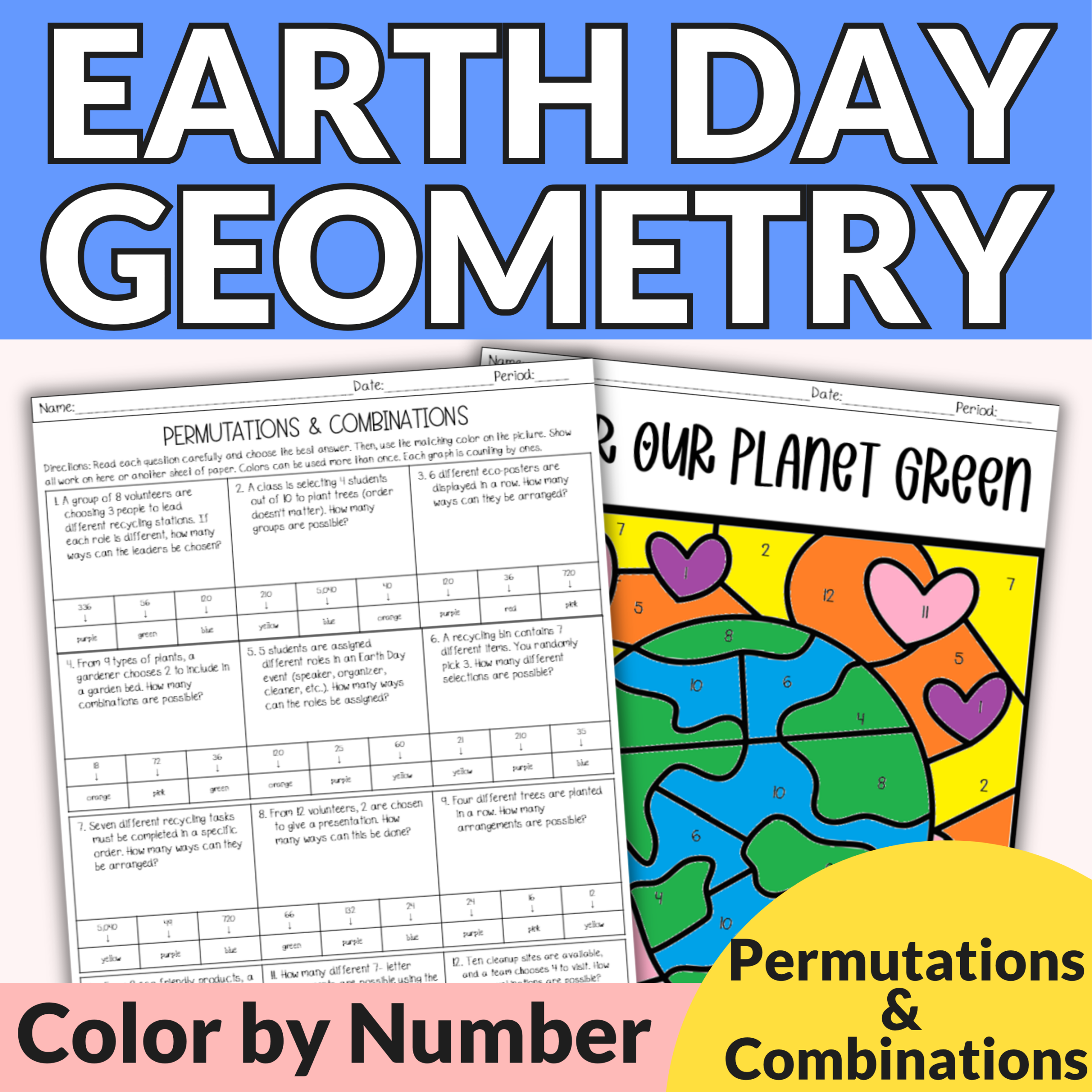 Struggling to keep your Geometry students focused on permutations and combinations as Earth Day approaches?