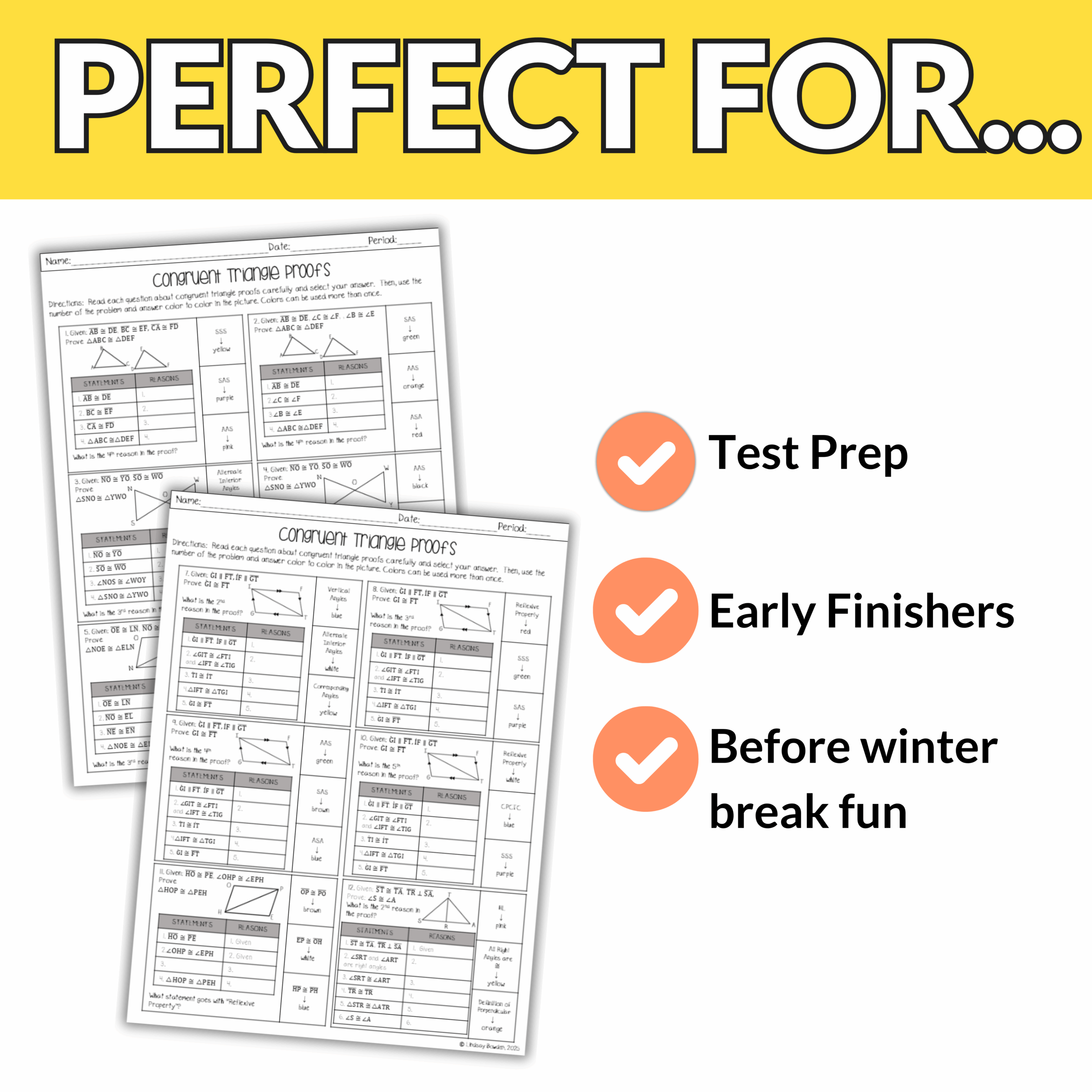 ➡️ Grab this resource today to make practicing proving congruent triangle proofs festive and fun for your students!