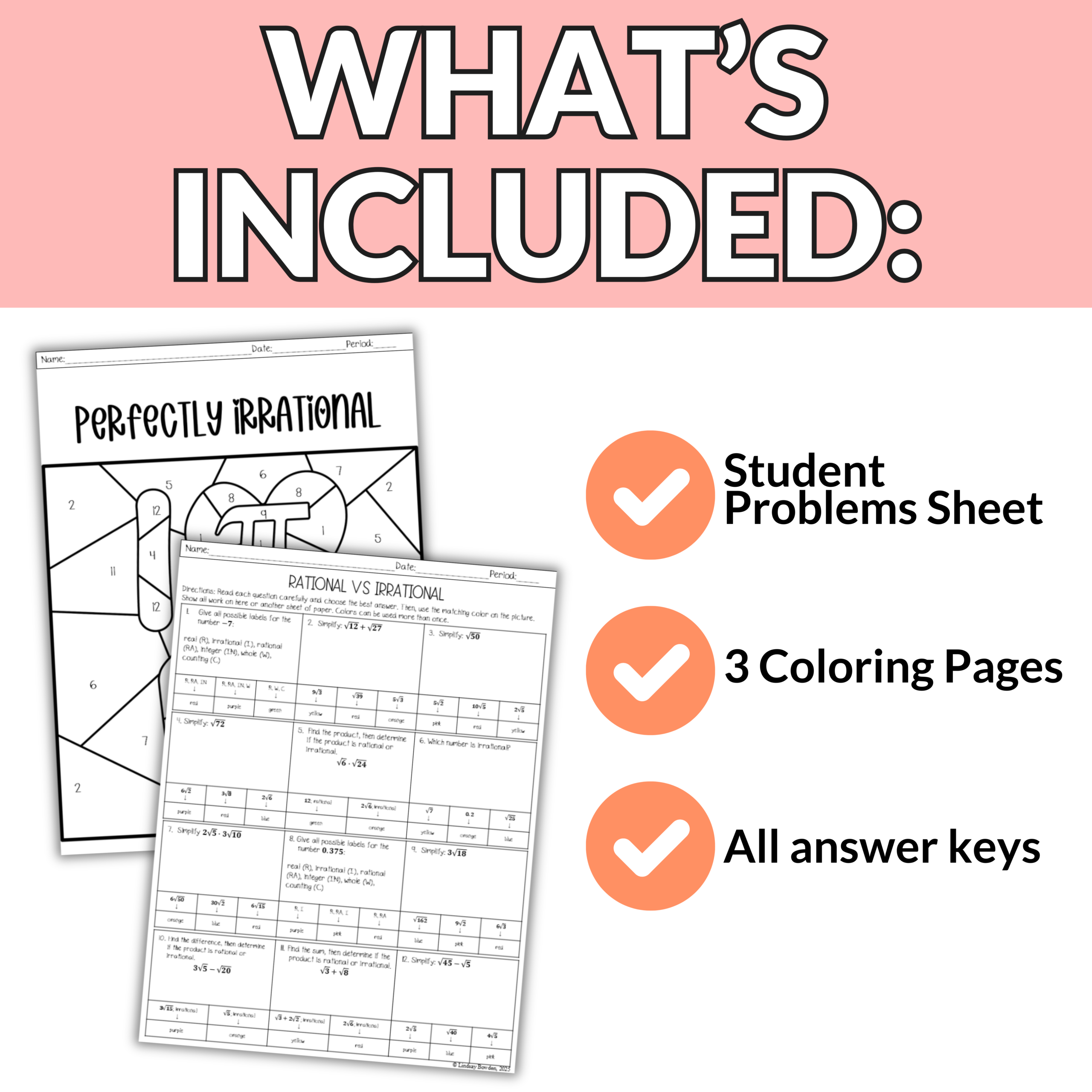 Elevate practice with the Pi Day Rational and Irrational Numbers Color by Number Activity! This engaging math activity transforms reviewing all parts of rational and irrational numbers perfect for that crucial for Pi Day. Perfect for back to school or any day in March. This activity is intended for 8th-10th grade.
