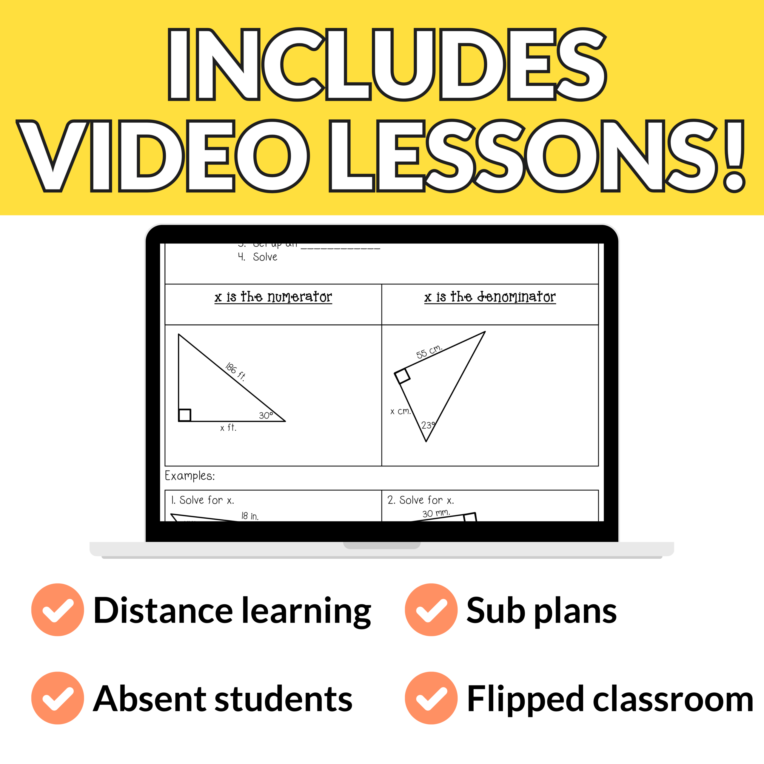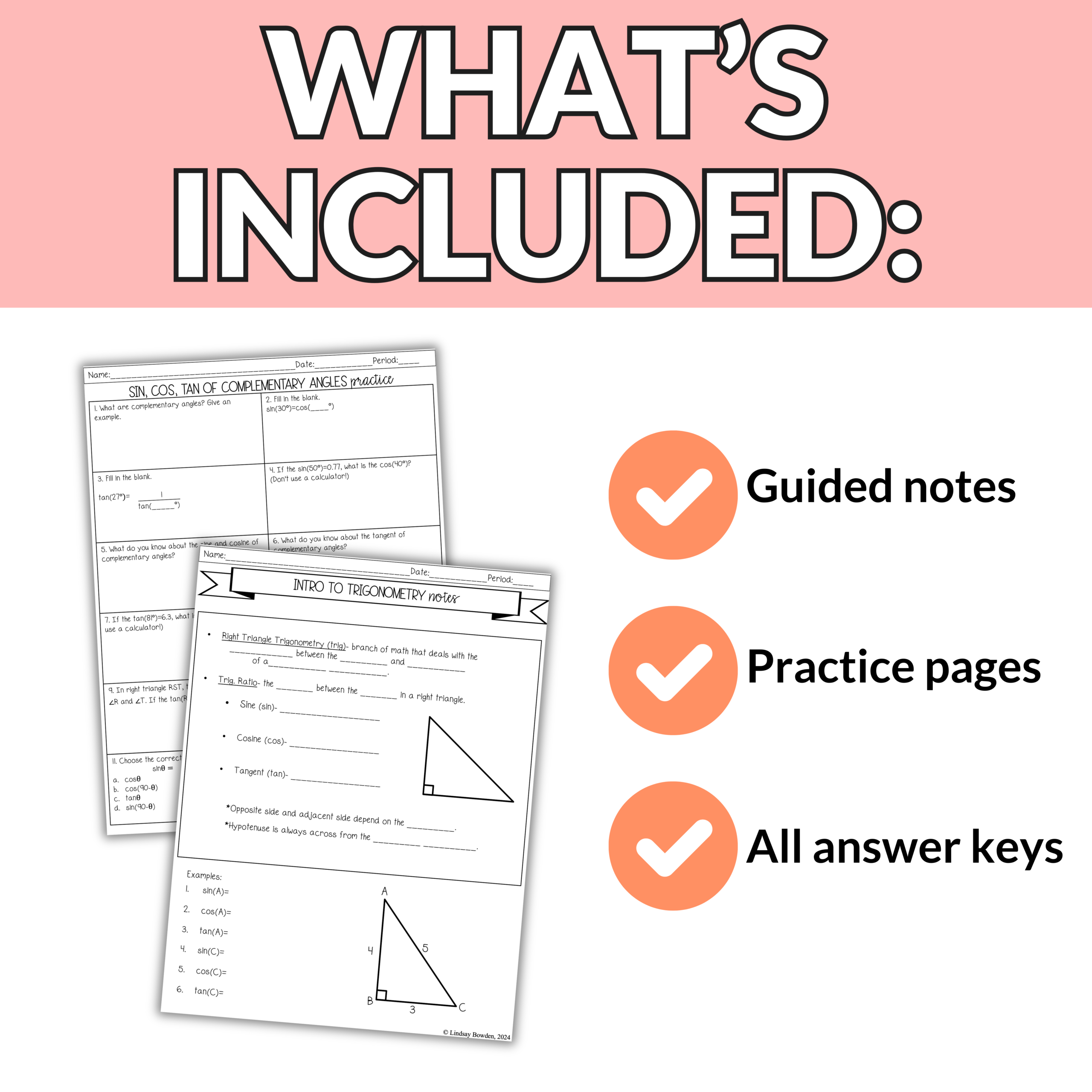 Looking for a comprehensive resource to teach Right Triangle Trigonometry? These guided notes and worksheets are perfect for helping your students master trigonometric ratios and applications through clear explanations and practical examples!