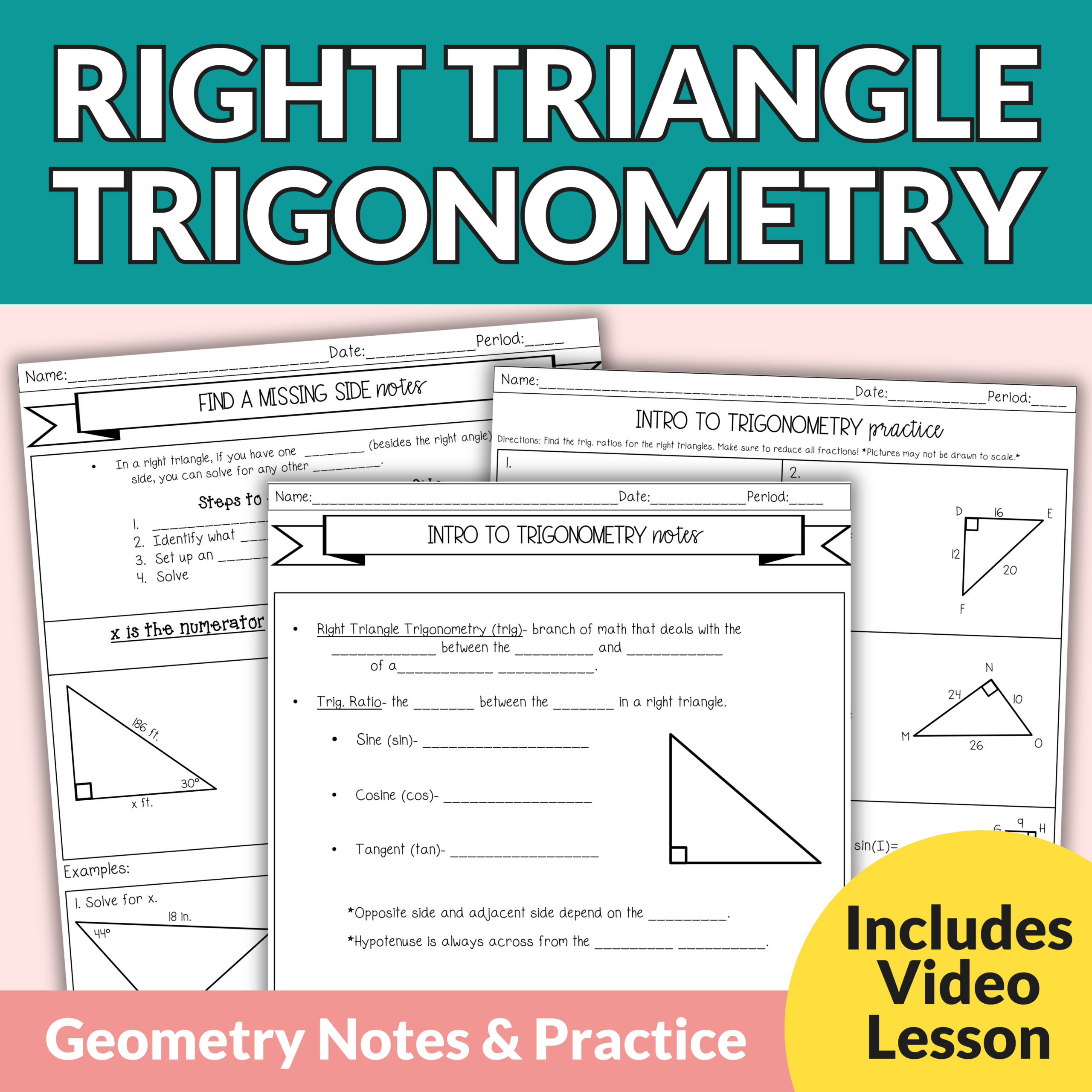 Right Triangle Trigonometry Notes and Worksheets for 9th – 11th Grade Geometry