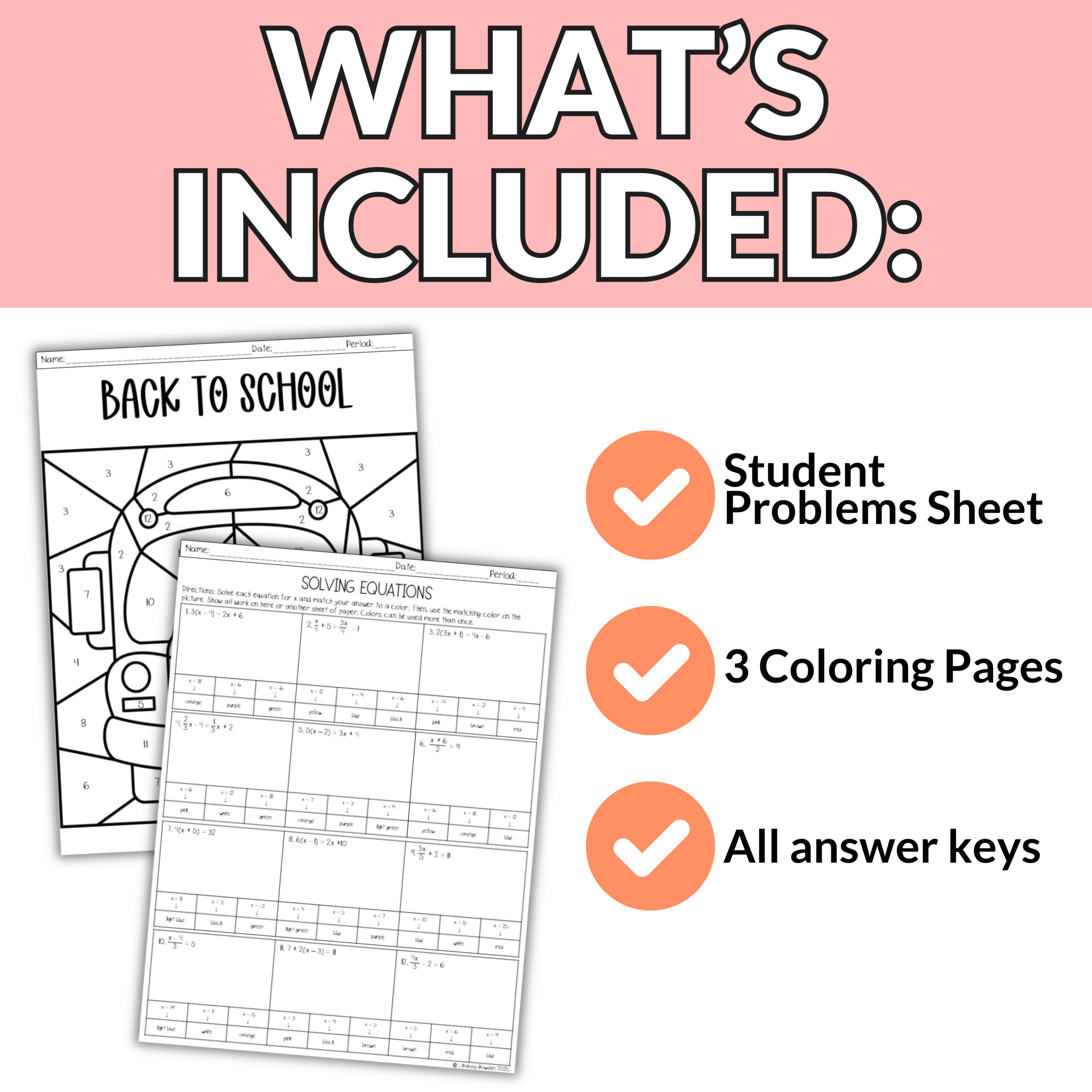 ➡️ Grab this resource today to make solving multi step equations with distributing, combining like terms, and fractions have a touch of back to school fun.