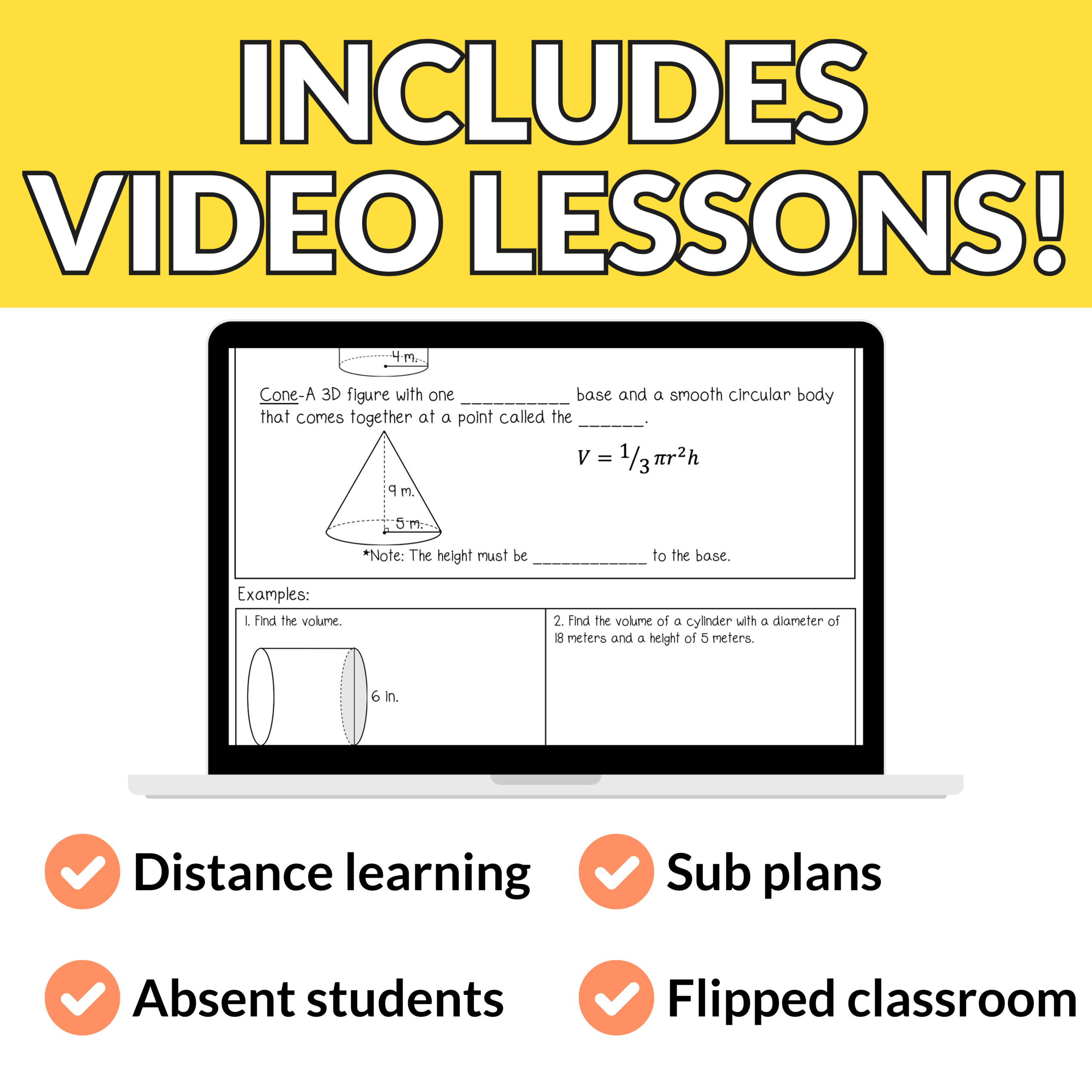 ✅ Volume of rectangular prisms, pyramids, cylinders, cones, and spheres