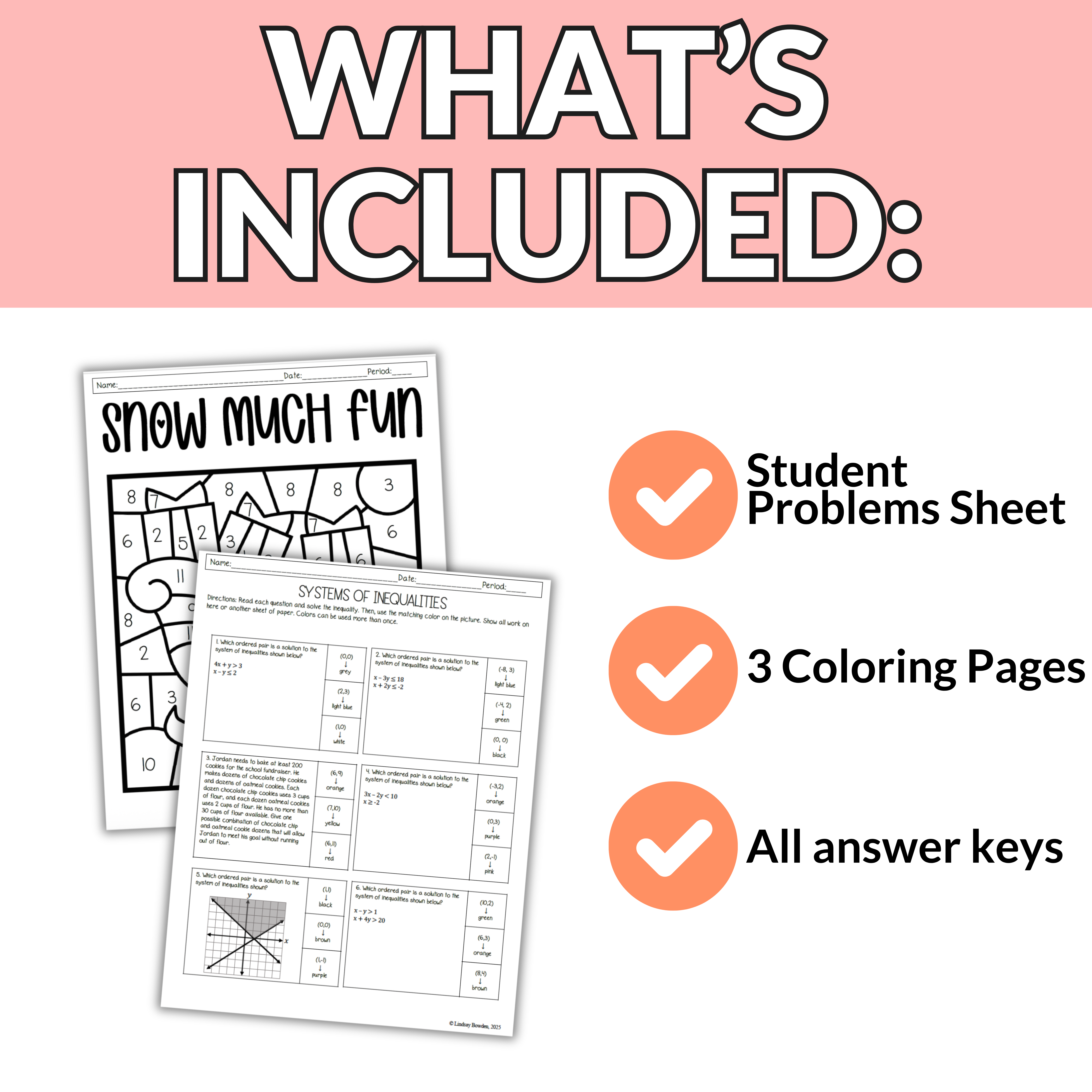 Students will work with a mix of graphed systems of inequalities, identifying solutions to systems, and word problems. Then students use their answers to bring a winter picture to life. With three different picture options, your students will love comparing their finished designs without everyone doing the exact same one!